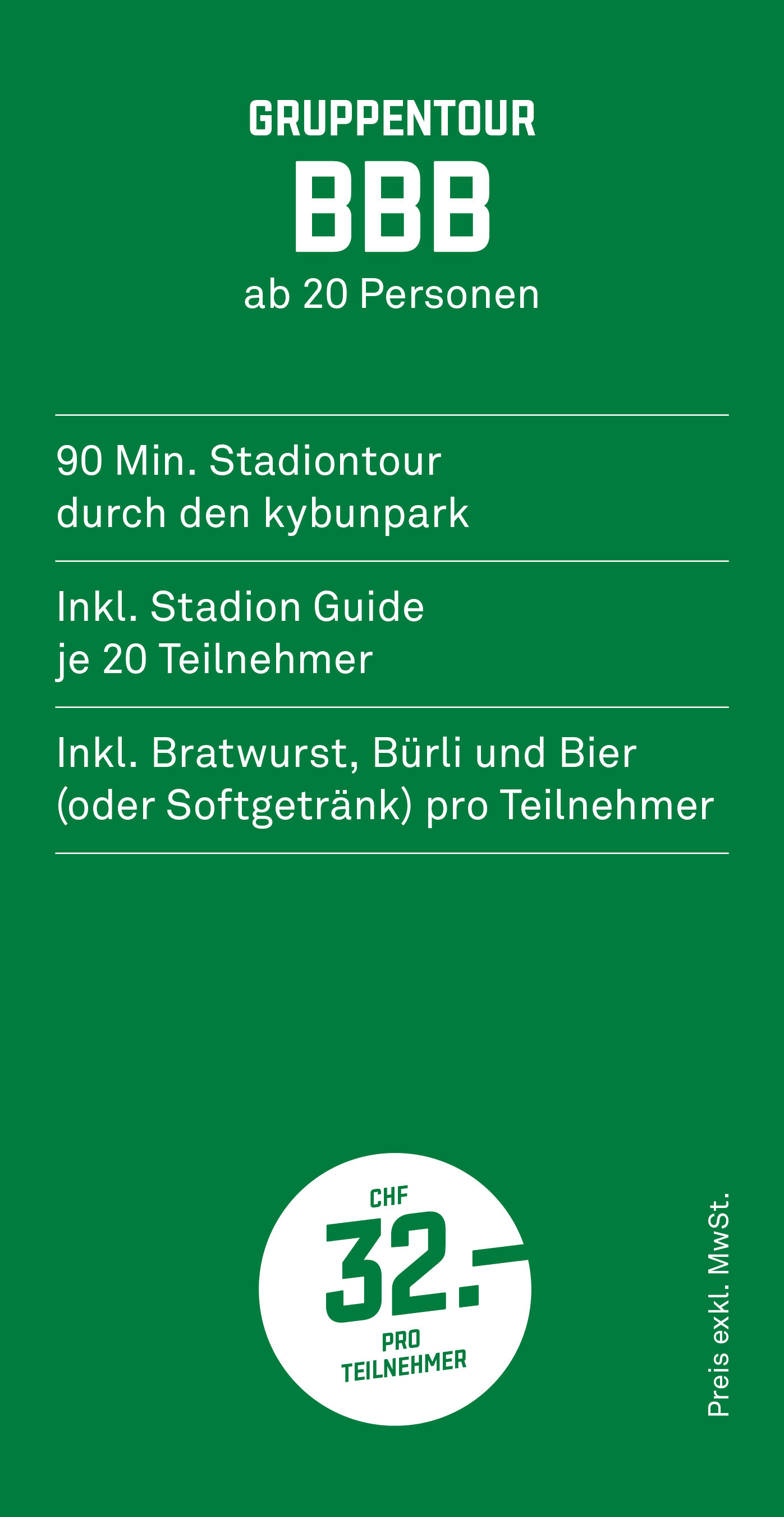 - An Heimspiel-Tagen und während Grossveranstaltungen werden keine Stadiontouren durchgeführt.
