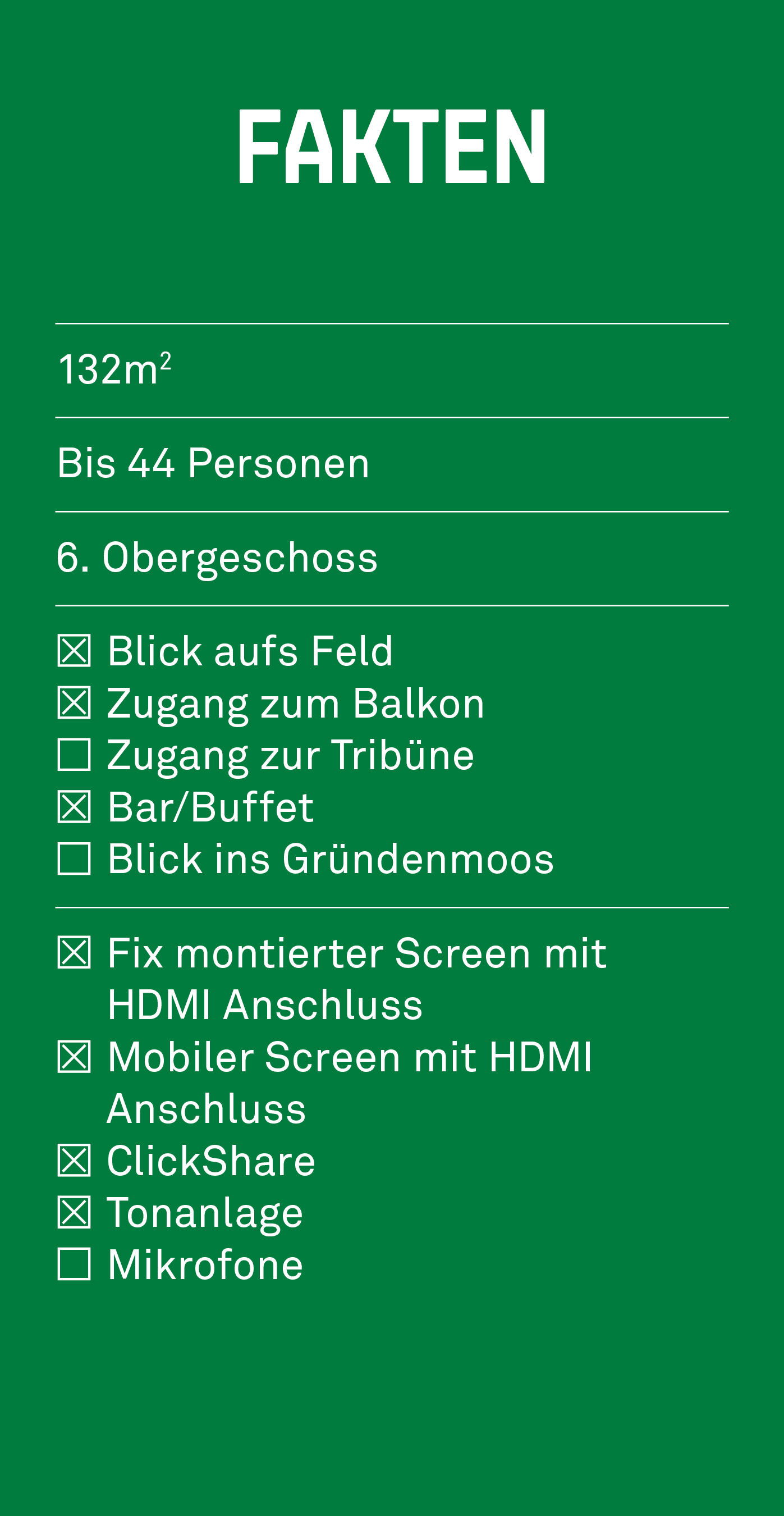 Die Martel Azado Lounge bietet Platz für maximal 50 Personen und befindet sich im obersten Stock des kybunpark.