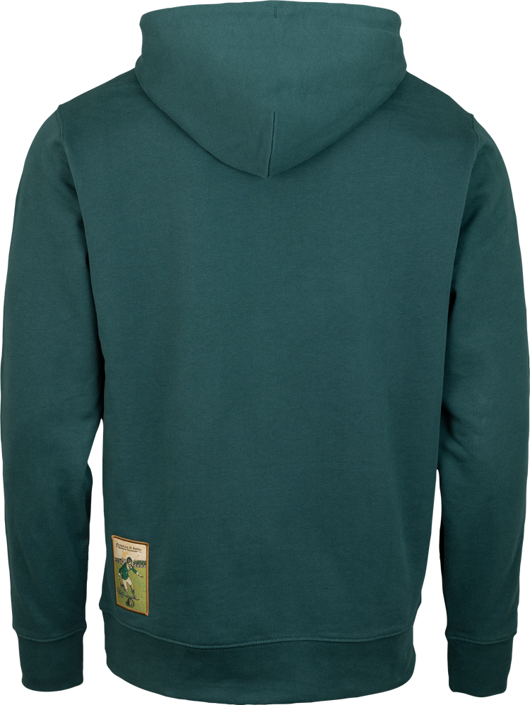 Der edle, dunkelgrüne Hoodie mit golden gesticktem Schriftzug basiert auf einer antiken Postkarte des Stadions Espenmoos - gelebte Tradition zum Anziehen.