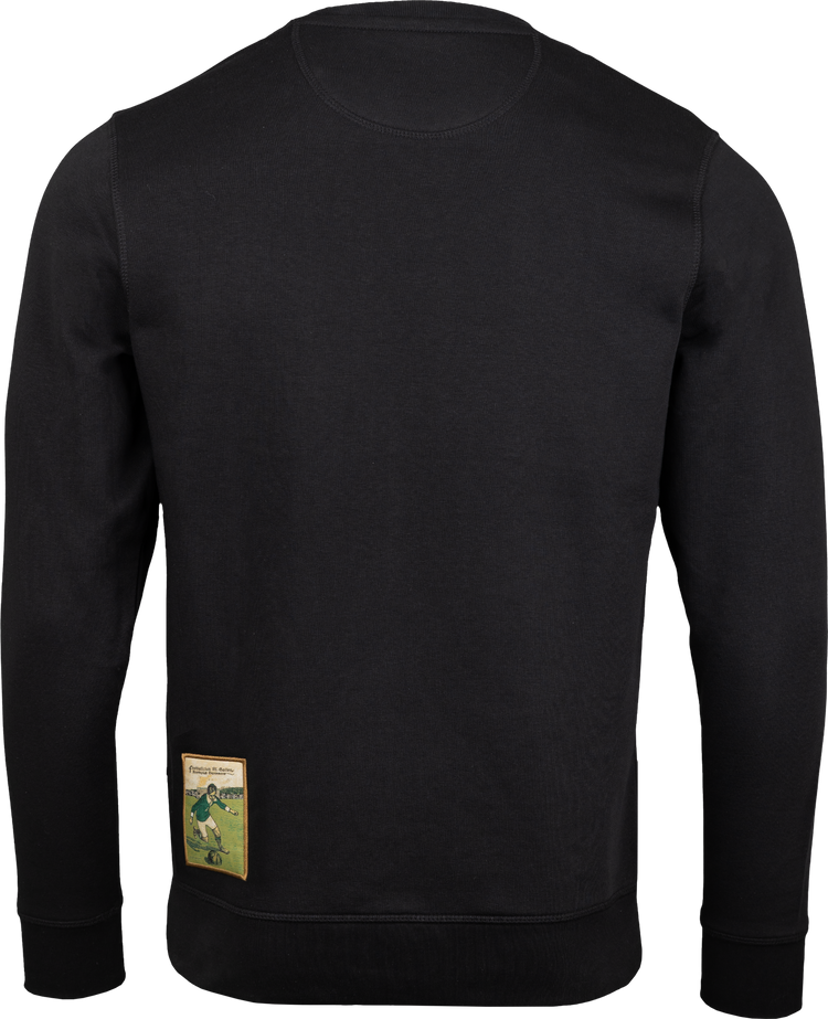 Das edle, schwarze Sweatshirt mit golden gesticktem Schriftzug basiert auf einer antiken Postkarte des Stadions Espenmoos - gelebte Tradition zum Anziehen.