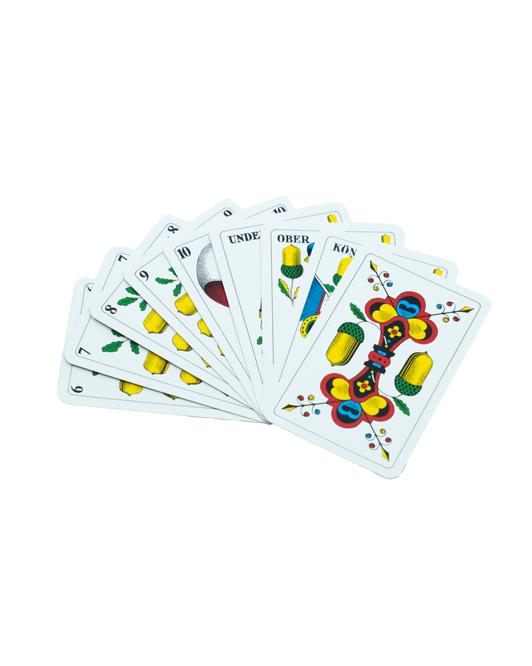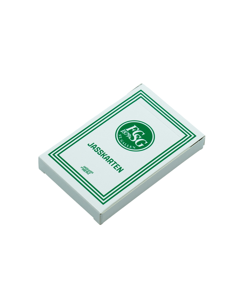 Jasskartenset im FCSG-Design mit 36 Schweizer Jasskarten, produziert von der AGM Agmüller in Neuhausen am Rheinfall