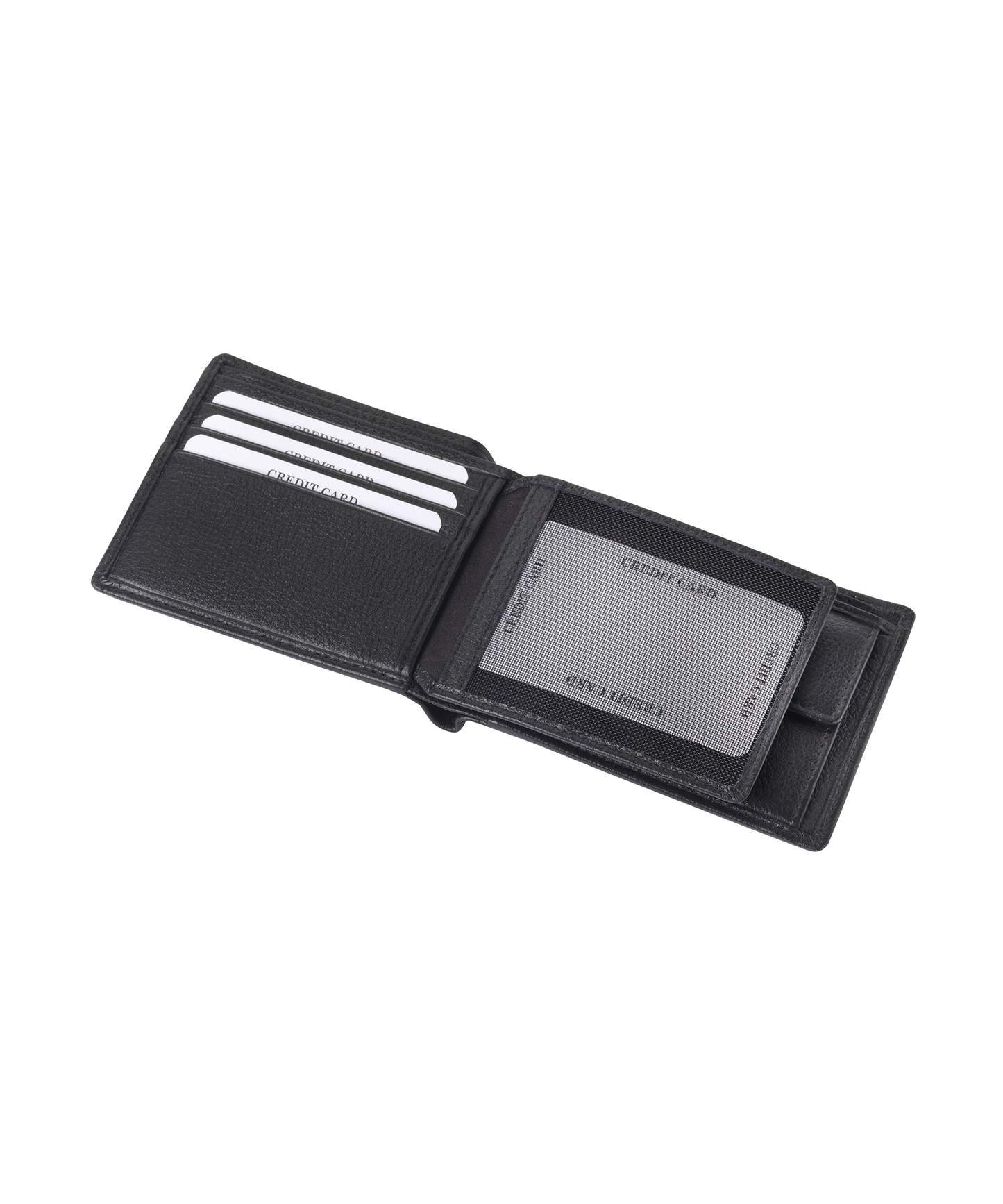 Edle und praktische Leder-Brieftasche mit geprägtem Retro-Logo. 125 x 95mm, mit sechs Kreditkartenfächern, transparenter Ausweistasche und verschliessbarem Münzfach.