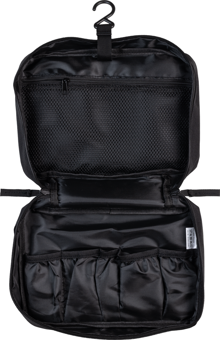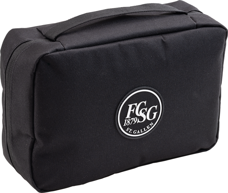 Der edle Kulturbeutel mit Aufhängung, fünf Fächern für Kleinzeug und einem grossen Mesh-Fach passt ideal in jeden Koffer für weitere grünweisse Europareisen.