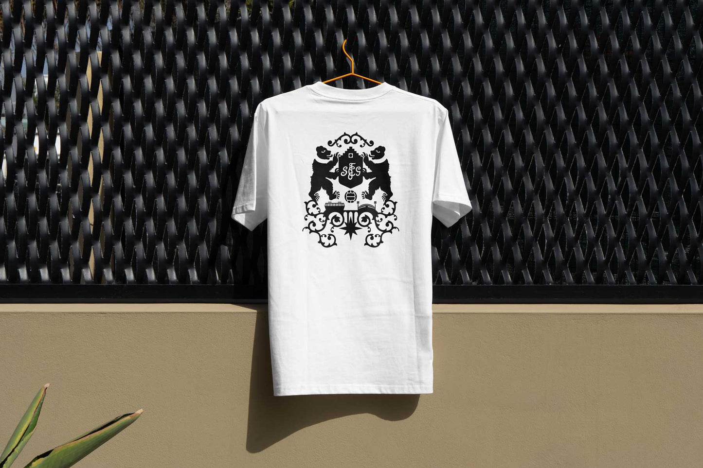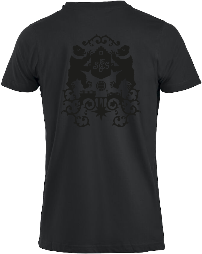 Der Rückenprint des schwarzen T-Shirts zeigt das Auswärts-Emblem der Saison 2025/26. Es zeigt den St.Galler Stadtbären, das Waaghaus, unsere alte und neue Heimat und wird umrahmt von Mustern aus der Stiftsbibliothek. Damit trägst du die Stadt auf dem Rücken.