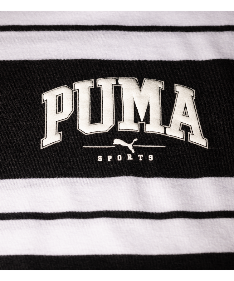 Retro-Baumwoll-Shirt im Crop-Top-Schnitt von Puma. Achtung: die Ärmel sind etwas länger gehalten, dafür ist es am Bauch kurz geschnitten. Mit Retro-Logo und Puma-Aufdruck.