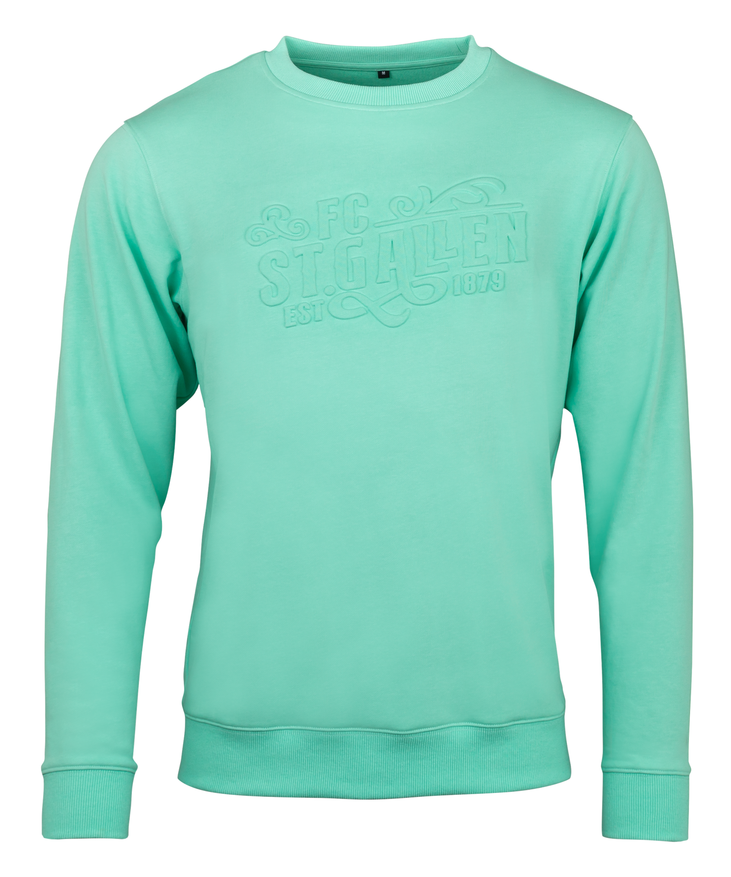 Bequemes mintfarbenes Kinder-Baumwoll-Sweatshirt mit FCSG-Schriftzug als Reliefdruck. Der Pulli ist auffällig aber dennoch dezent, für Schule, Freizeit oder Match geeignet.