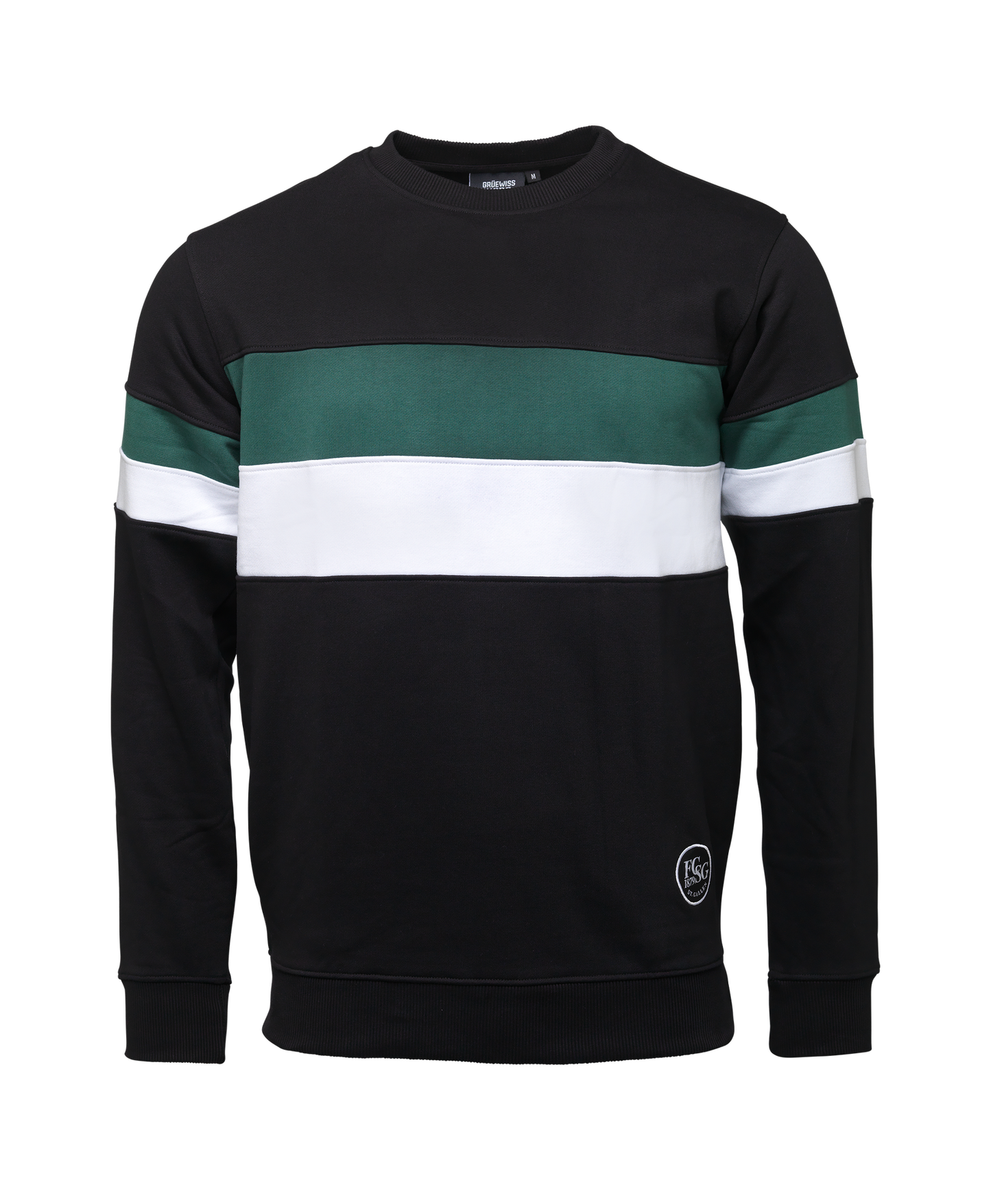 Eleganter schwarzer Baumwoll-Sweater mit aufgenähten grünweissen Streifen auf dem Brustbereich und an den Ärmeln. Mit dem dezenten schwarzen Logo auf Hüfthöhe eignet sich das bequeme Sweatshirt sehr gut für den Alltag - selbst in Bern, Basel oder Zürich: grünweiss sieht immer gut aus. Zämä für üsen FCSG!