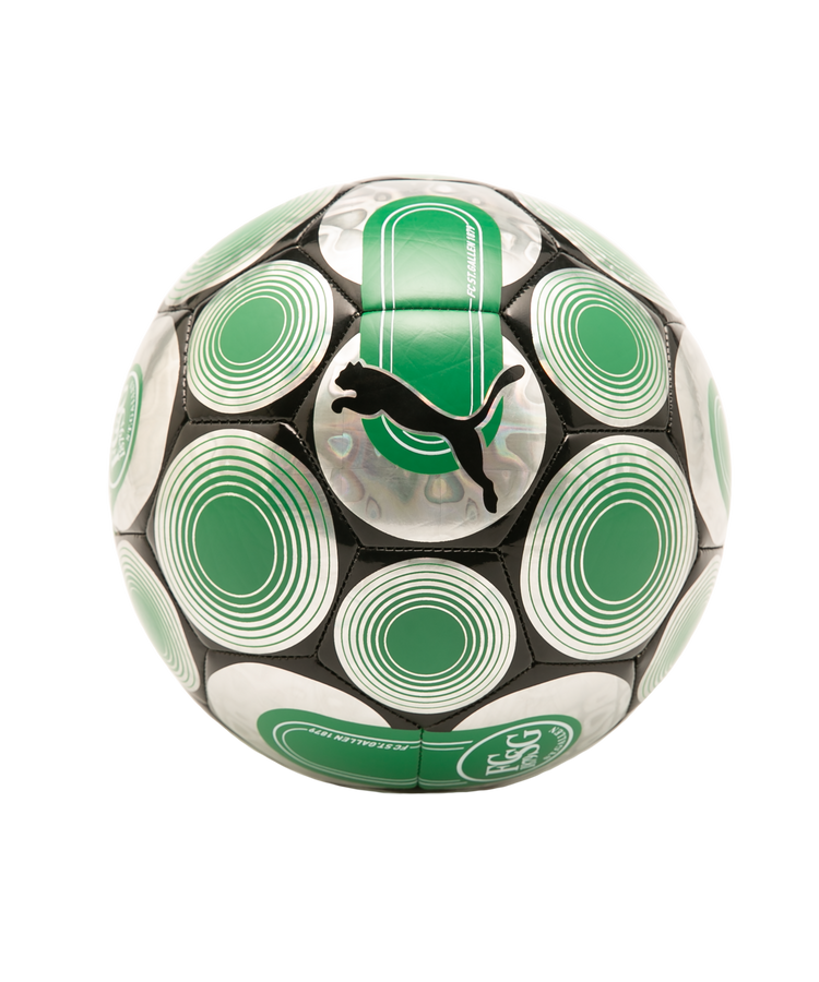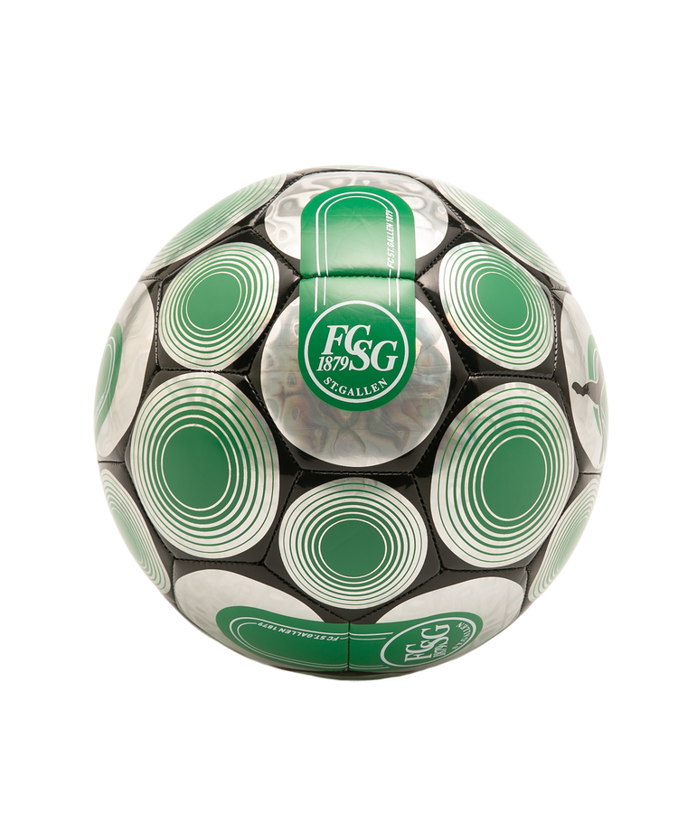 Du bist bestens beraten mit dem Modell in Schwarz. Auf jeden Fall die richtige Entscheidung – der Mannschaftsball von PUMA. Die besten Spieleigenschaften werden durch diesen Teamball mit seiner hervorragenden Flugbahn garantiert. Du bekommst eine gute Ballkontrolle geboten. Lasse dich von diesem Mannschaftsball des 1948 gegründeten und international etablierten Sportartikelanbieter mit der PUMA Cat begeistern. Der elegante, silbern reflektierende Puma Fanball 24/25 hat die Grösse 4. Er ist damit kleiner als das letztjährige Modell und eignet sich besonders für Junioren. Der Ball glänzt mit schönen grossen FCSG-Logos und ist im selben Design gehalten wie die Bälle der anderen Puma-Topclubs, Manchester City, Borussia Dortmund und AC Milan.