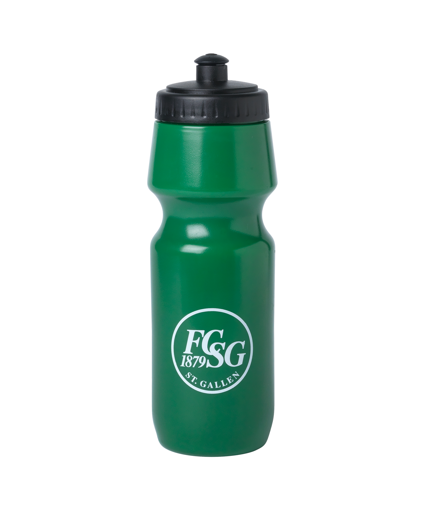 Die praktische grüne FCSG-Trinkflasche mit Stopp-Verschluss für Sport und Freizeit.